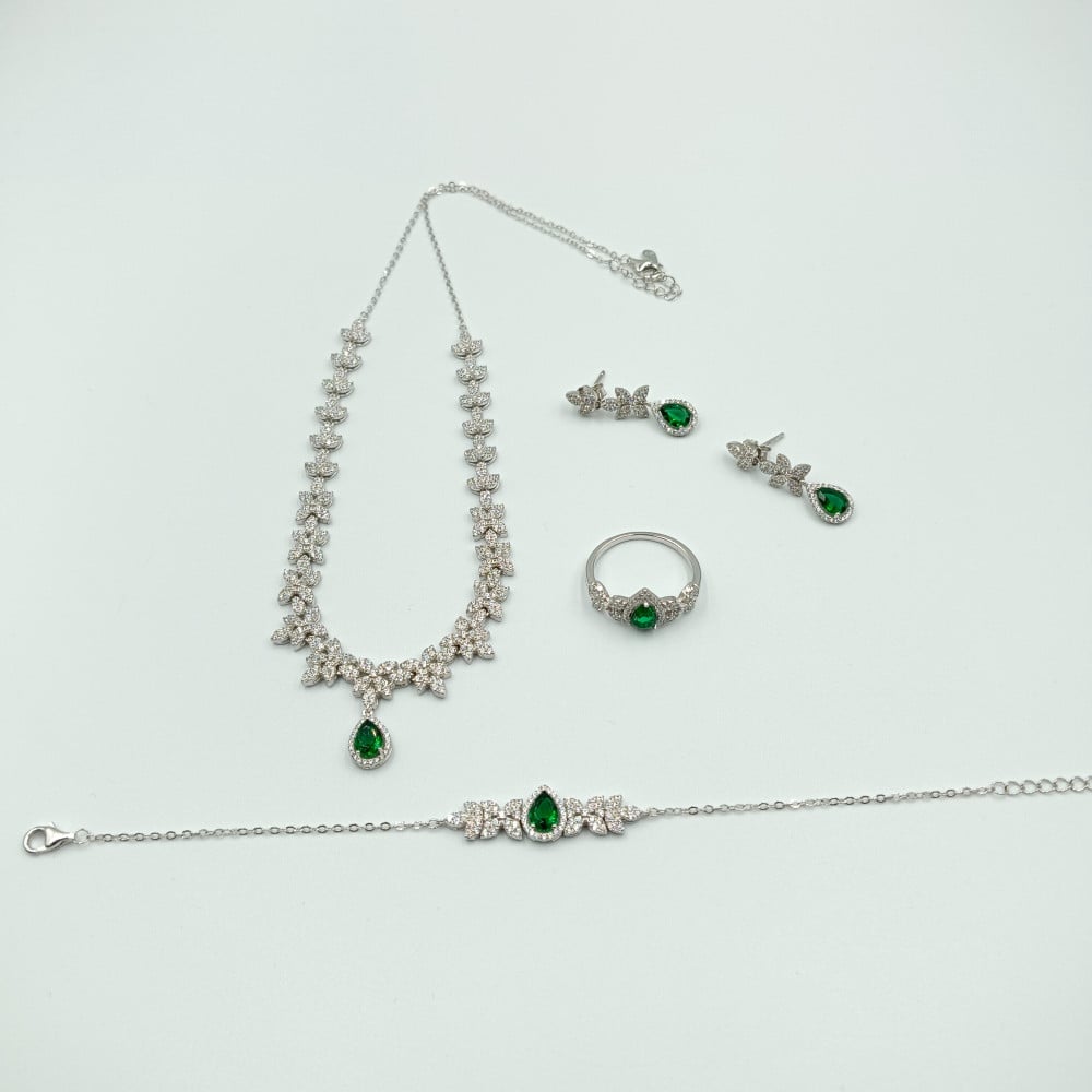 طقم مناسبات مرصع بالكريستال الأخضر فضة صافي عيار 925