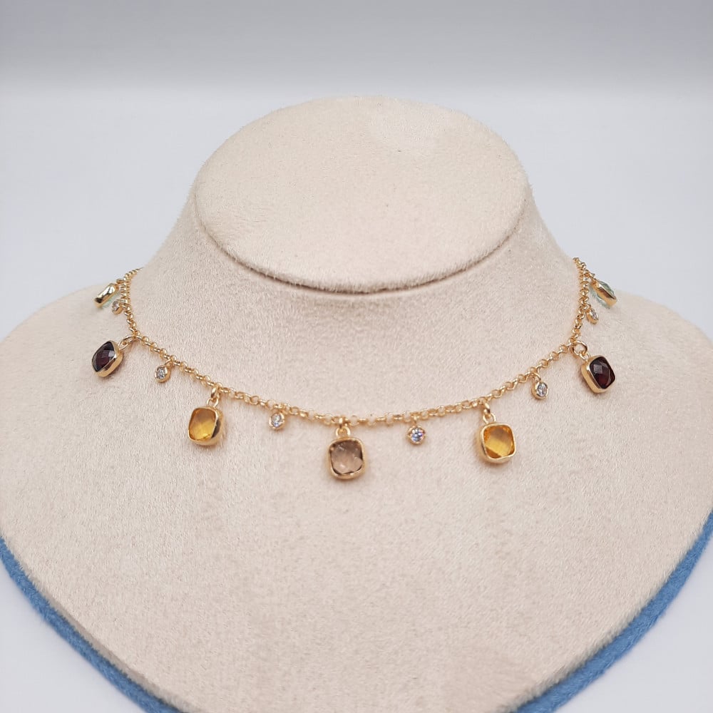 شوكر فضة صافي عيار 925 ايطالي بفصوص كريستال ملونة