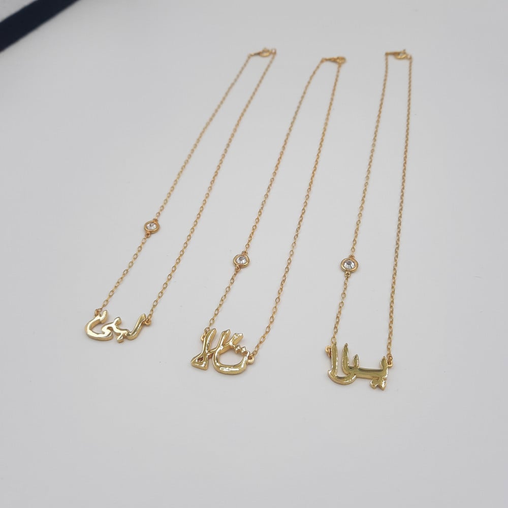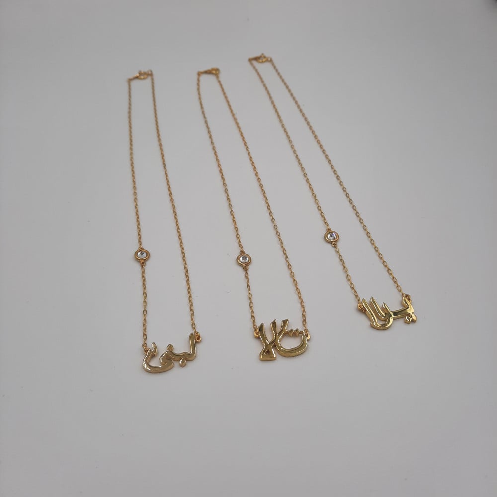 قلادة بالأسم مع فص كريستال فضة صافي مطلي ذهب