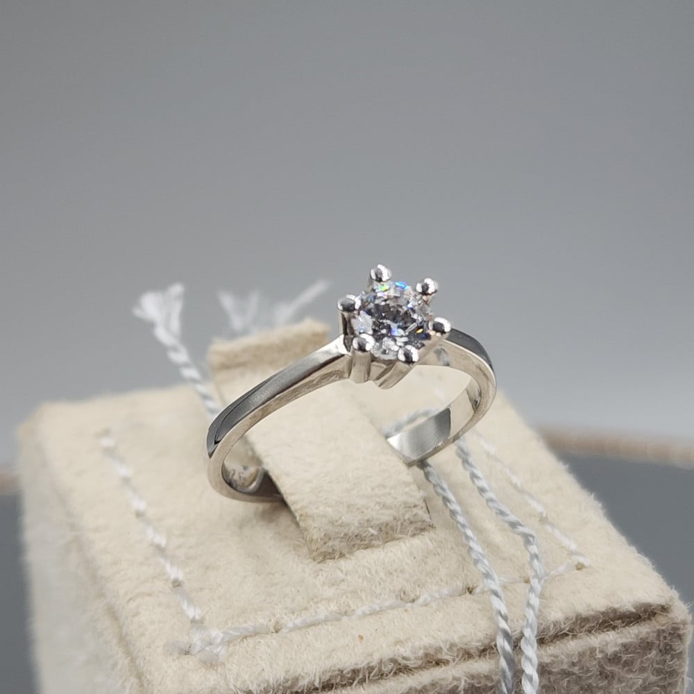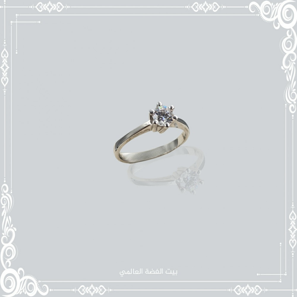 خاتم سوليتر فضة صافي عيار 925 مع فص سوارفيسكي