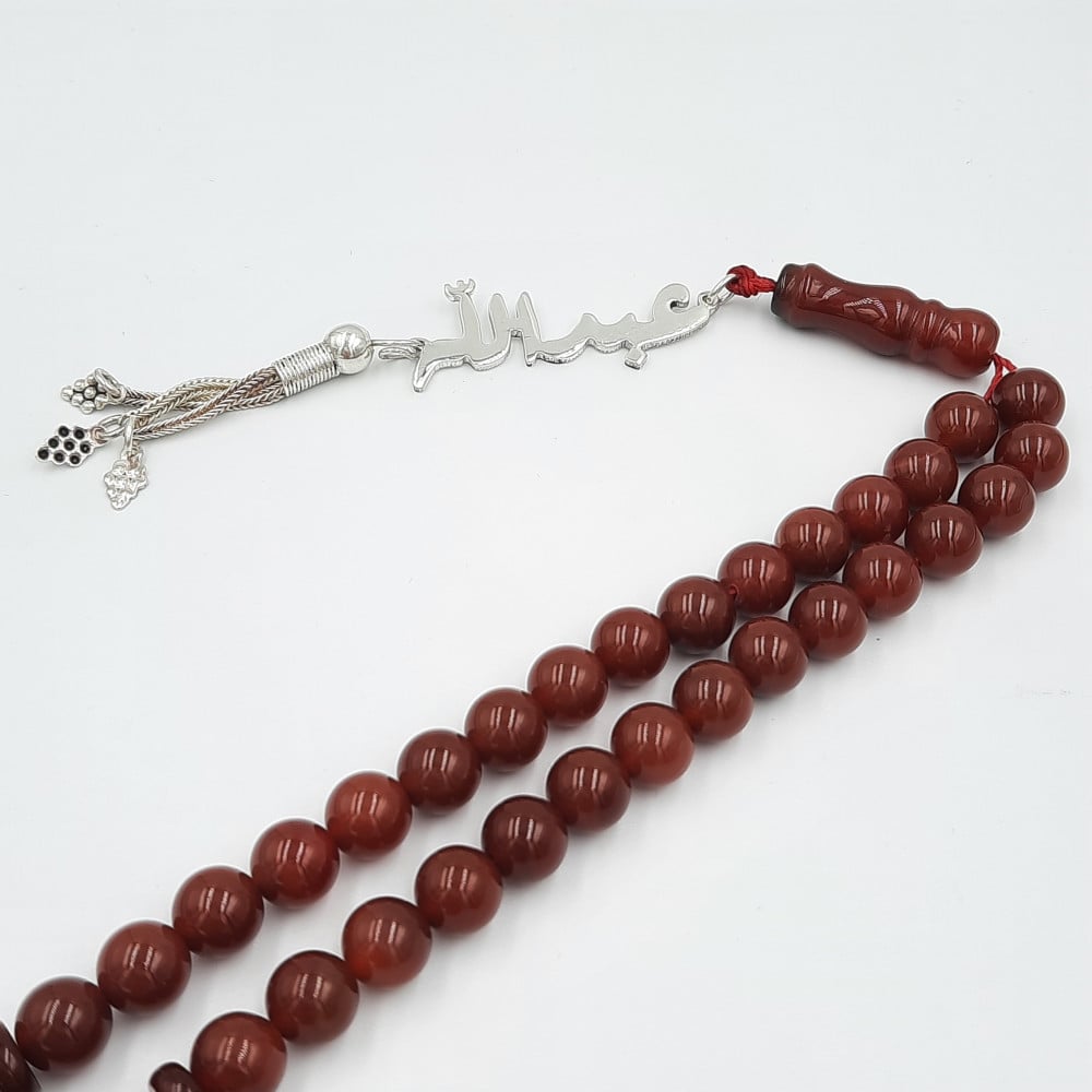 سبحة من حجر العقيق مع أسم من أختيارك فضة صافي عيار 925